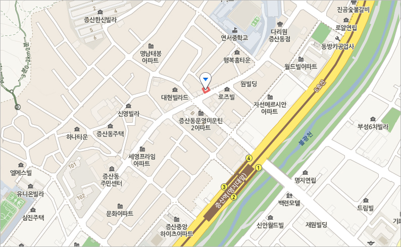 - 서울 지하철 6호선 증산역4번 출구 하차-연서중 방향으로 도보 5분이내 위치